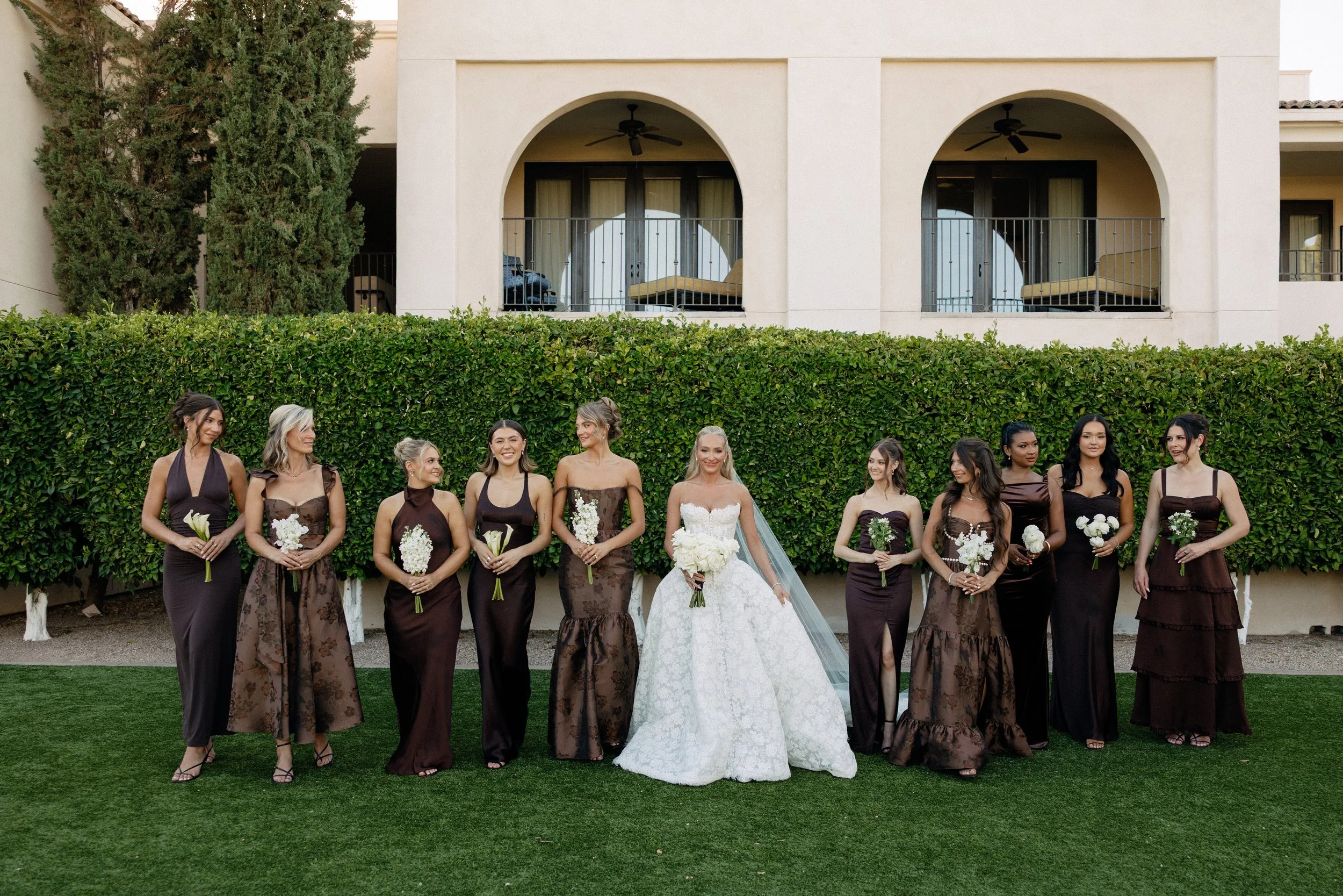 When Chrissy and Steve chose Omni Scottsdale Resort & Spa at Montelucia for their October wedding, they wanted a day that felt like them: timeless, slightly edgy, and absolutely packed with good vibes. Set against Camelback Mountain in Paradise Valley, their black‑and‑white celebration with hints of green and chocolate brown turned the Valencia Lawn and Alhambra Ballroom into a full‑scale experience from ceremony through last song.